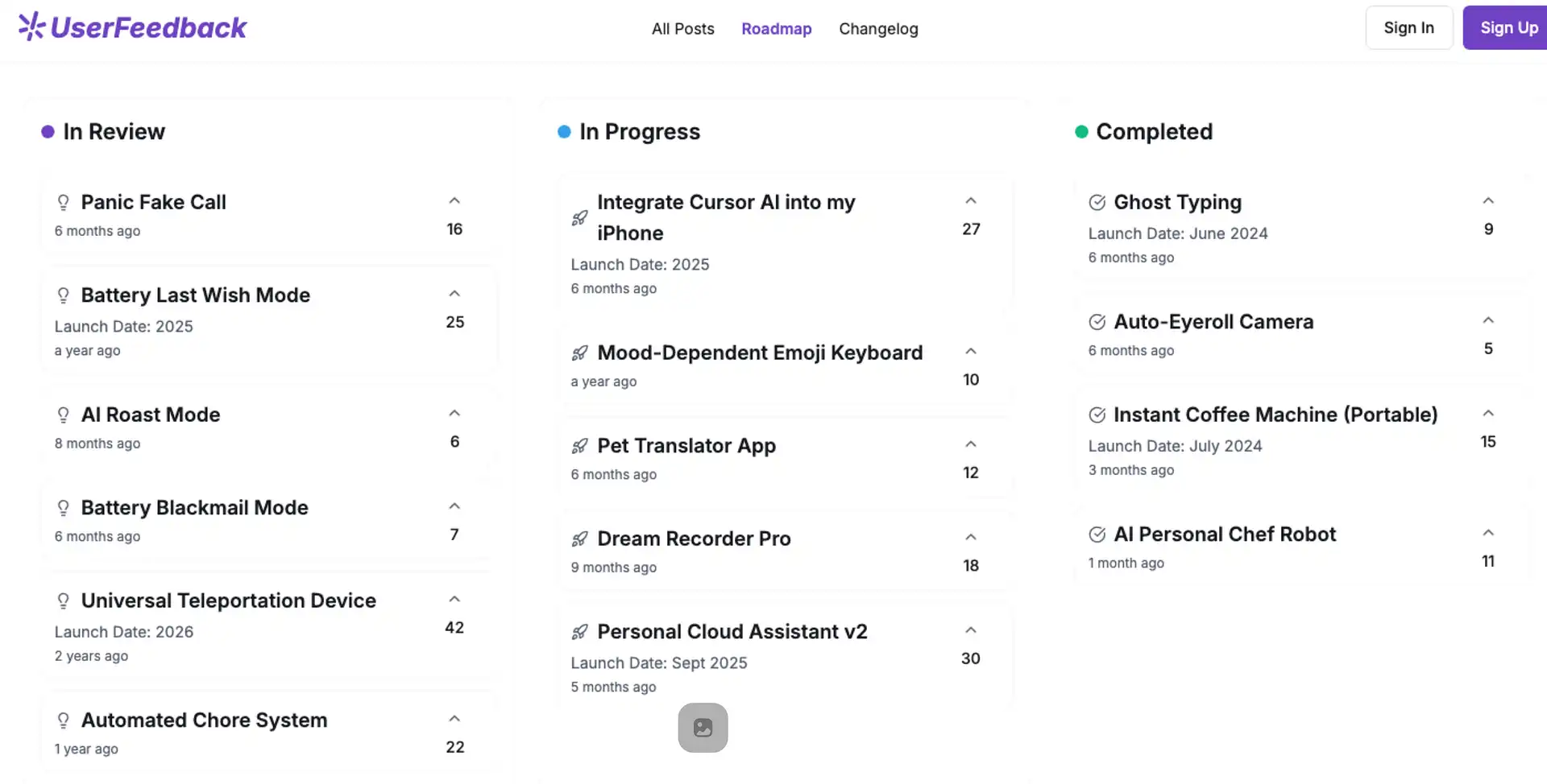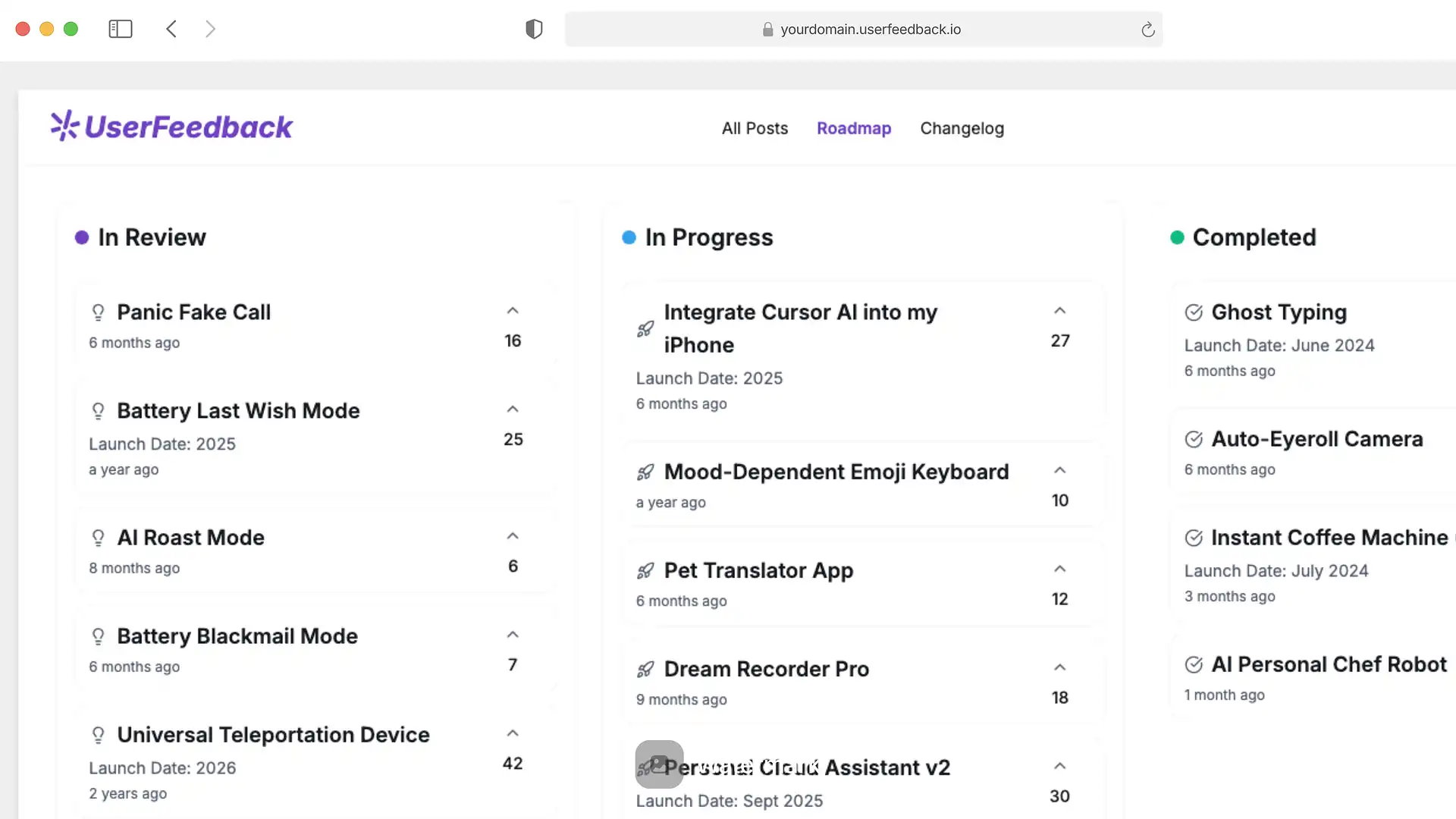 Users can upvote and downvote feature requests. You can see which features are most requested and prioritize your roadmap accordingly.