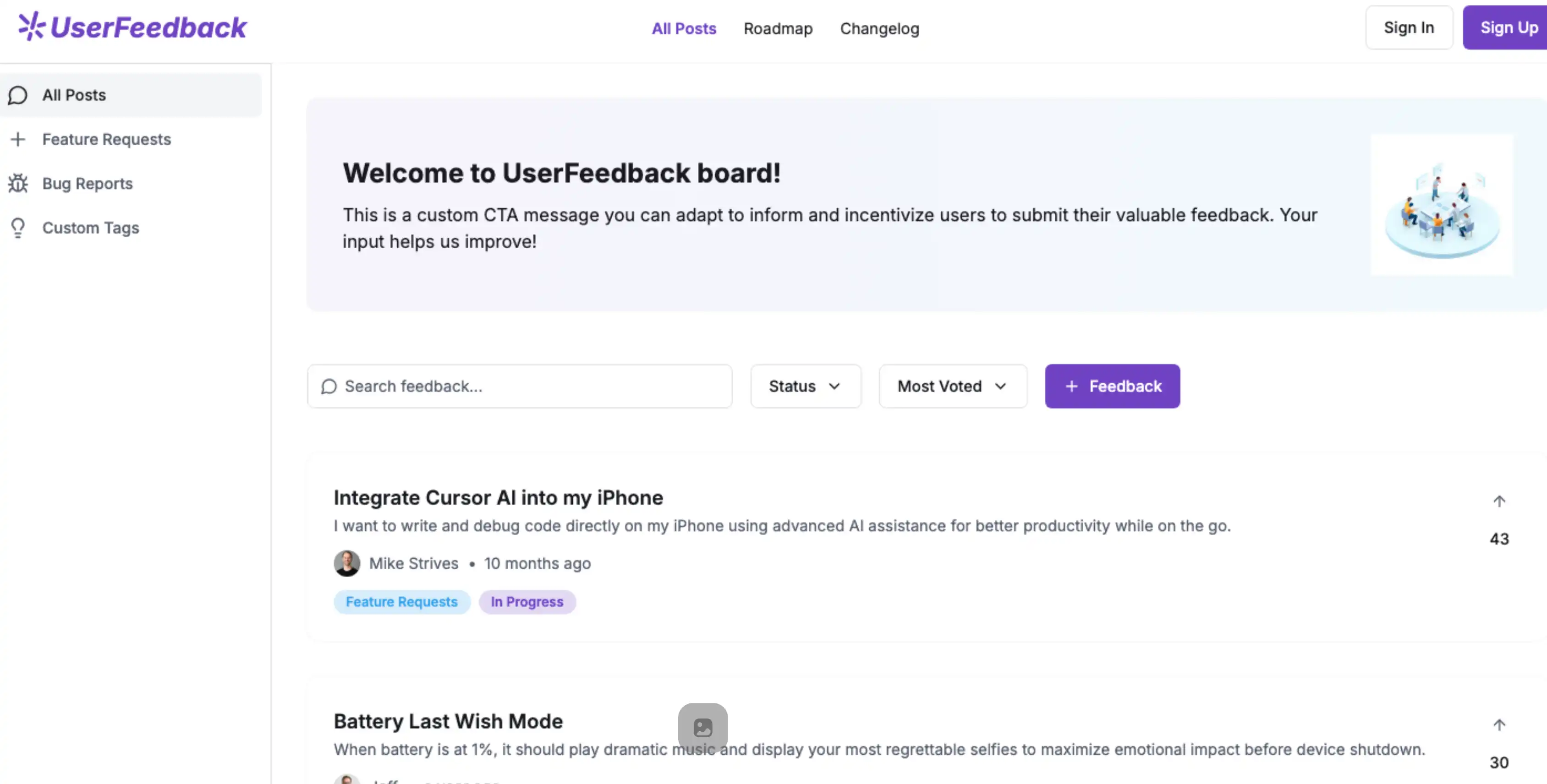 The roadmap feature is a game-changer. Our users love seeing our progress and knowing their feedback is being heard.