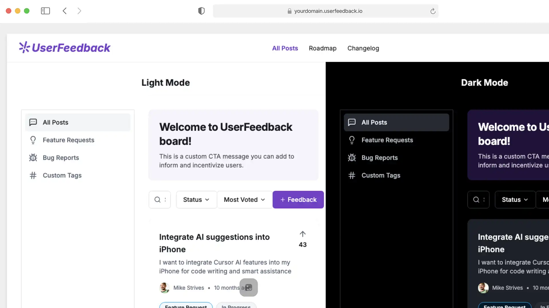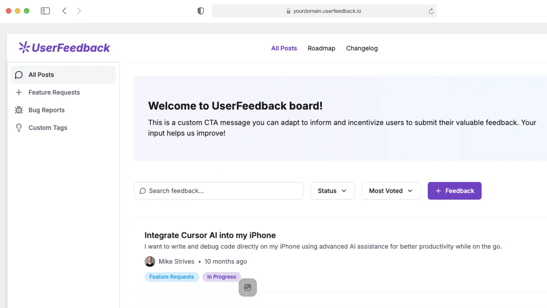 The roadmap feature is a game-changer. Our users love seeing our progress and knowing their feedback is being heard.